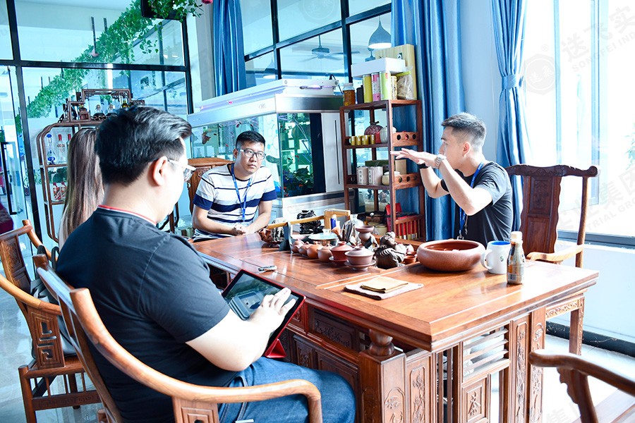 參觀結束后,在會議室,董事長助理為廣英科技園的領導就此次項目進行PPT講解。包括公司介紹、工程案例、設計詳解、施工流程。